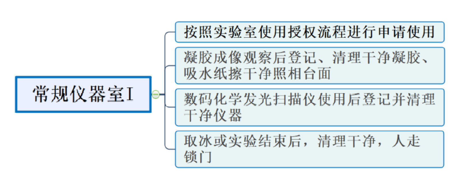 该实验室位于新逸夫教学楼252房间,房间负责人齐凤慧。主要用于电泳后成像显示、实验用冰以及细胞生物学学科(植物方向)部分常规实验。中心仪器主要有2台凝胶成像系统,2台制冰机、数码化学发光扫描仪、紫外仪等,面向全院师生教学及科研开放。