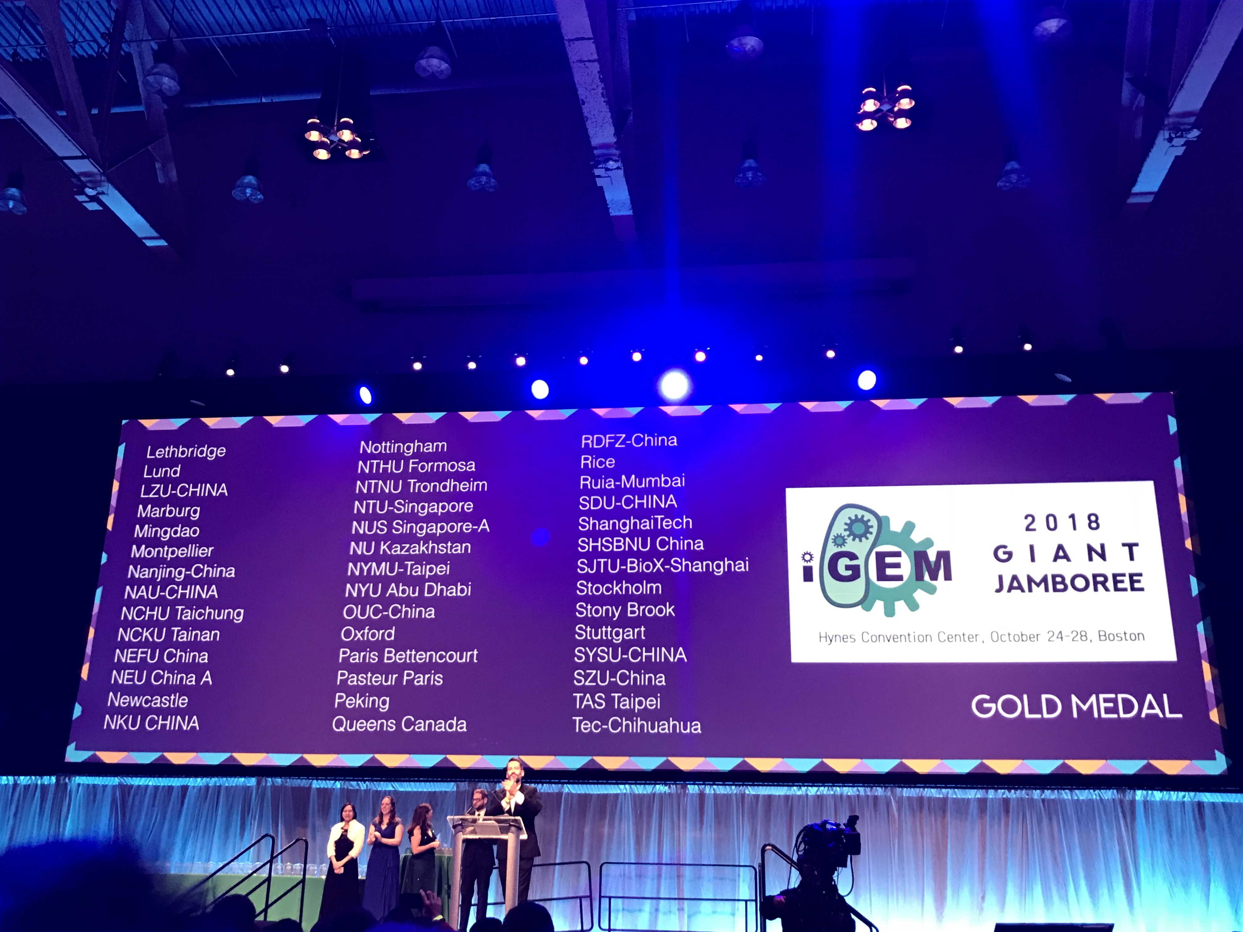 iGEM大赛(国际遗传工程机器设计大赛)是由美国麻省理工学院主办的合成生物学领域内最高级别国际性学术竞赛。10月28日,2018年iGEM大赛在美国波士顿落幕。哈佛大学、麻省理工学院、牛津大学、北京大学、清华大学等全球343所国内外顶尖高校的参赛队伍进行了激烈角逐,我校代表队再度夺金,并荣获大赛唯一的最佳信息处理单项奖。这是我校在该项赛事第二次获得金奖,首次获得单项奖。