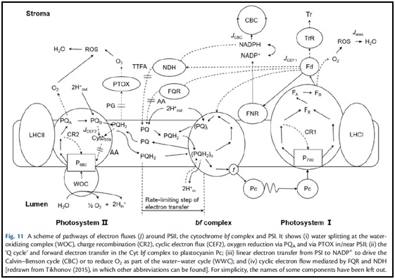 该团队利用了现代光合测定技术,结合优化的叶绿素荧光检测方法、P700氧化还原动力学及薄膜质谱仪,评估了植物在光诱导过程中电子流的组成和分配(Fig.11)。研究结果不但能估算出CEF,而且在生长光下能够估算出LEF。这对模拟活体植物叶片光合电子传递过程的微调控十分重要,而这个模拟过程对于探究环境变化下复杂网络响应中的一些过程是必要的,为评估动态光环境下植物的碳素积累以及生态碳汇过程提供技术支撑。由于英国上市公司官网365孙广玉教授和澳大利亚国立大学Chow教授的密切合作,该成果2019年11月发表在《Plant Cell & Physiology》的文章被评为亮点论文。