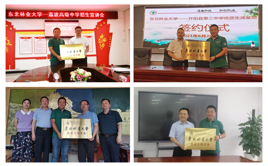2021年6月21日至28日,学院开展赴贵州省招生宣讲工作。副院长宋兴舜、副处级辅导员郭婷婷和学院原党委书记张明赴荔波高级中学、开阳县第三中学、贵州省实验中学和遵义四中等四所高中交流走访、签订协议、并进行了“东北林业大学优质生源基地”授牌。学院教师王江,闫绍鹏,魏德强,吴昊分赴贵州省遵义市、黔西南州(兴义)、毕节市、关岭自治县、六盘水市、安顺市和贵阳市等地市进行招生宣讲活动。