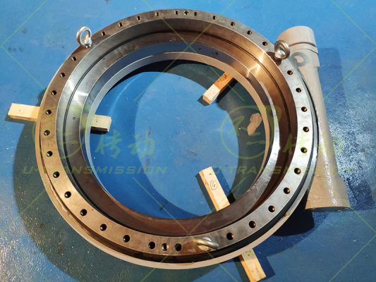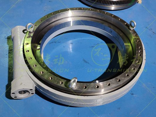 蜗轮蜗杆式回转驱动在装配过程中先确保蜗杆的轴向窜动量,轴向窜动量不能过大,如果过大,回转驱动的精度不能保证,支撑蜗杆的轴承也会由于游隙过大很快损坏;轴向窜动量也不能过小,如果过小,蜗杆在旋转过程中与涡轮摩擦发热,热胀导致蜗杆伸长,造成蜗杆抱死,回转驱动损坏,并且过小的窜动量容易造成支撑轴承过盈运转,导致支撑轴承损坏。最终检测涡轮与蜗杆之间的齿间隙,调整到合适的范围内。成品的回转驱动给客户安装了适配法兰和适配轴,保证与客户的马达可以直接连接使用,为客户安装使用带来便捷。