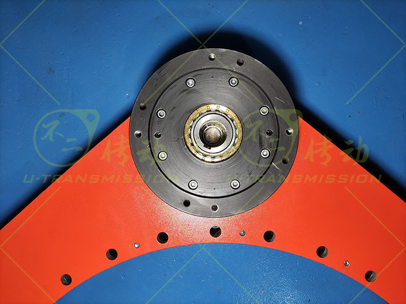 S-III-O-1120三系列重载交叉滚子外齿全防护齿轮式回转驱动,客户需要大扭矩输出,所以客户减速电机的接口尺寸也很大,齿轮的轴孔直径50mm,根据客户的具体使用要求,william威廉中文官网的直齿驱动设计了加厚的适配法兰,为了保证大扭矩使用时直齿驱动的可靠性,william威廉中文官网在适配法兰的配合上采用特殊设计,从根本上保证了驱动大扭矩使用的稳定性。