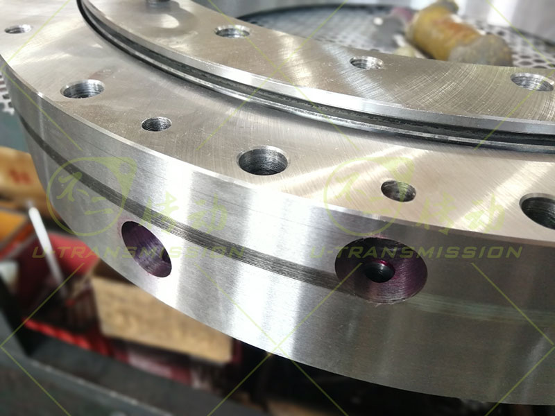 020.25.560 精密双排球回转支承客户用在破碎设备上,转速60转/分钟,由皮带轮直接带动旋转,双排球回转支承具有转速高,载荷大,抗倾覆能力好,运转平稳等特点,加工的难点是保证两排沟道位置一致还需要保证两排沟道平行,只有这样两排钢球才能同时受力,才是真正意义上的双排球,加工不好的话只有一排钢球受力,就变成单排球回转支承了,失去了使用双排球回转支承的意义。