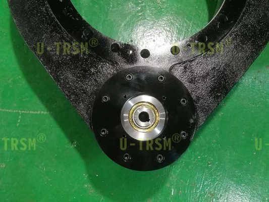 重载系列的回转驱动回转支承加厚设计,钢球选用更大规格的,壳体加厚设计,法兰定位销加强设计,这样的设计可以显著提高回转驱动的倾覆力矩,齿轮和齿圈采用模数8的齿,进行齿淬火增加齿面的耐磨性和耐冲击性,适合客户频繁启停的工况,客户的电机法兰特殊,如果想要直接连接只能通过给回转驱动的法兰预埋螺栓的方式实现,我们采用了非常可靠的预埋螺栓的方法,既能保证客户使用的可靠性,又能非常方便的拆卸更换。
