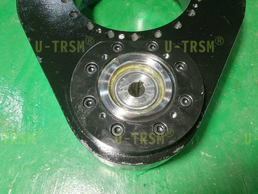 II系列的回转驱动模数6,回转支承高度及壳体厚度都比I系列厚,综合承载上比I系列的大,齿采用模数6比I系列输出扭矩大,减速比大于III系列,是个非常折中的方案,为了方便客户安装,将适配法兰切掉一块,在不影响回转驱动强度和结构的情况下满足了客户的安装需求。