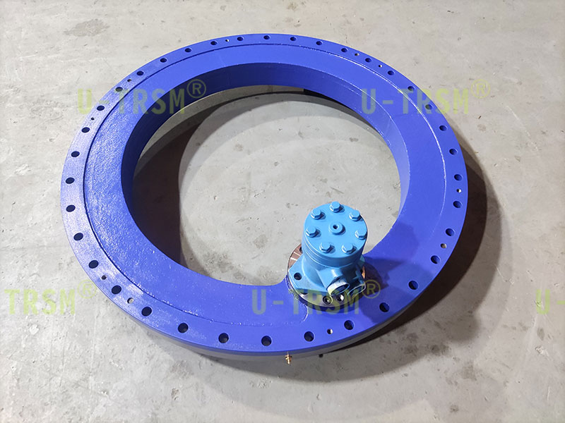 设备有现成的液压站,所以我们为客户配套了液压马达,液压马达转速选择范围大,可以通过调整液压油的流速调整液压马达的转速,输出扭矩大。马达可以短时间过载或者堵转使用,可以使用在恶劣的环境中,不易损坏。液压马达具有转速可调,大扭矩的特性,一般不需要配额外的减速机使用,可以直接连接回转驱动,方便快捷。