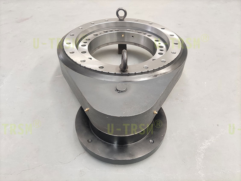 根据客户的要求我们推荐了S-III-O-0455这款齿轮式回转驱动,回转驱动我们选择合适的参数进行设计,可以满足高转速(限制转速80转/分钟),还可以在竖直安装的工况下平稳运转。