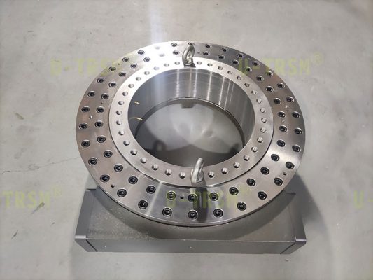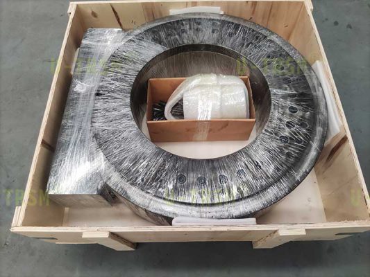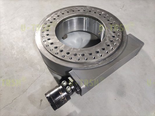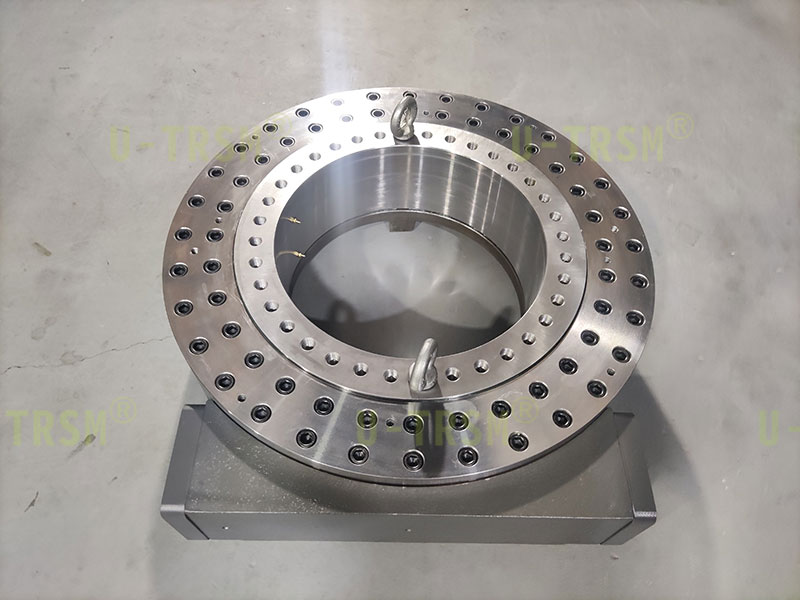 WDE25 大倾覆力矩双排交叉滚子内圈旋转回转驱动应用在特殊设备上,用户要求回转驱动要承受大于大于550KN.M的倾覆力矩。设计一款可以承受大倾覆力的回转驱动不是什么困难的事情,但是客户需要的是替换原来的旧回转驱动,这就要求我们在不改变安装尺寸和旧回转驱动的使用原则的情况下按照我们的思路设计一个回转驱动,并且这个回转驱动还要能承受更大的倾覆力矩。