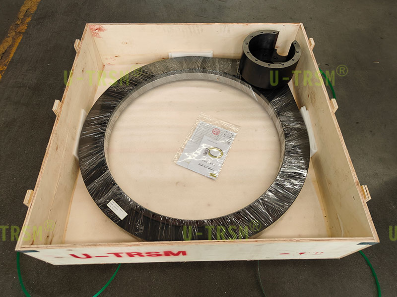 我司设计生产的S-II-O-0941高精度齿轮式回转驱动就完美适配客户的RV减速机,不仅如此我们还在极其有限的空间内给客户预留出了传感器安装位置,极大的方便了客户的使用。RV减速机一般是轴孔输出或者是法兰盘输出,需要做适配轴或者适配盘,RV减速机的直径普遍偏大,设计安装法兰时需要考虑客户安装是否方便,需要特别注意干涉问题。