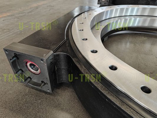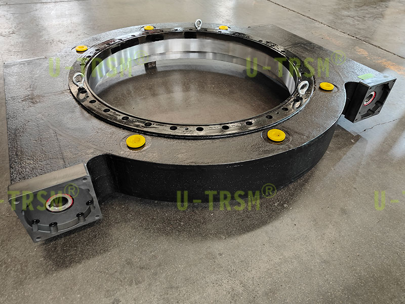 此款回转驱动应用于高原低温环境中,载荷大,扭矩大,使用环境在-40-50°C,并且要求高精度。回转驱动中的回转支承需进行全磨加工,保证尺寸的精准,表面无任何划伤,在零部件加工及搬运过程中做保护处理。此款回转驱动输出扭矩可达230kNm,保持力矩可达1400kNm,载荷可达350t,回程间隙≤0.05°,保证回转驱动的整体气密性,采用加装高质量硅橡胶密封,william威廉中文官网设计工程师根据客户的使用要求,研发了此款回转驱动。