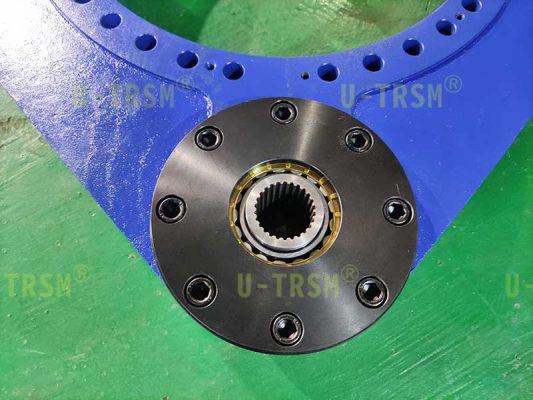 回转驱动内部的回转支承采用零游隙,以此来确保传动平稳,并且不损失回转精度。齿轮和齿圈使用数控磨齿机磨齿,保证齿精度。客户的减速机连接法兰非常大,并且需要使用传动轴进行动力传递。所以我们又给客户适配加工了传动轴,而且传动轴采用渐开线花键连接,可以同时保证传动精度和传动可靠性。