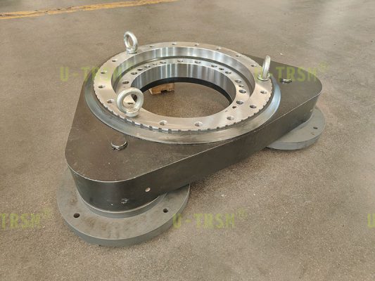william威廉中文官网的工程师给客户设计了一款高精度双输入重载荷大扭矩回转驱动:该设备用在自动化设备上,回转驱动中的转盘轴承采用零游隙设计,可以保证回转驱动在使用过程中的平稳性及精度。